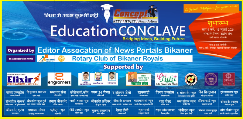 बीकानेर, मरूनगरी बीकानेर, जिसे अब शिक्षा नगरी के नाम से भी जाना जाता है, के विद्यार्थी आज पूरी दुनिया में शहर का नाम रोशन कर रहे हैं। शिक्षा की गुणवत्ता को बढ़ावा देने के उद्देश्य से एडिटर एसोसिएशन ऑफ न्यूज पोर्टल्स बीकानेर की ओर से शनिवार, 13 जुलाई को रानी बाजार स्थित उद्योग भवन के सभागार में दो चरणों में एज्युकेशन कॉन्क्लेव का आयोजन किया जा रहा है। इस कार्यक्रम के सह आयोजक रोटरी क्लब बीकानेर रॉयल्स है।