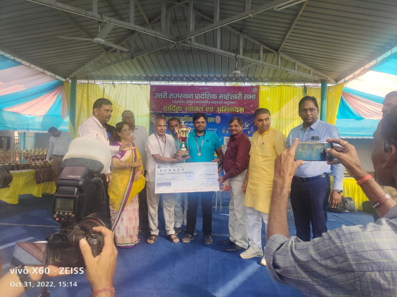 उत्तरी राजस्थान प्रादेशिक महासभा द्वारा आयोजित चार दिवसीय खेल महोत्सव का विभिन्न खेलों के फाइनल मैचों के पुरस्कार वितरण के साथ संपन्न हुआ। मुख्य अतिथि अखिल भारतीय माहेश्वरी महासभा के संयुक्त मंत्री कैलाश सोनी,विशिष्ट अतिथि सूरत निवासी रामरतन भूतड़ा,शोभा सादानी थे। इस मौके पर प्रदेशाध्यक्ष बाबूलाल मोहता ने बेहतरीन तरीके से महोत्सव सम्पन्न होने पर सभी का आभार जताया।* उन्होंने कहा कि महोत्सव में क्रिकेट ,चैस,कैरम, टेबल टेनिस,बैडमिंटन एवं वॉलीबॉल में ऑल इंडिया स्तर पर 850 खिलाडिय़ों ने विभिन्न खेलों में अपना दमखम दिखाते हुए प्रदर्शन किया। उन्होंने बताया क्रिकेट में वीएमएसए नागपुर की टीम विजेता,एमएनएम जयपुर उपविजेता रही। वहीं शतरंज में अंडर 18 में ऋषि मून्दड़ा विजेता,गोपाल कृष्ण उपविजेता रहे। तो सीनियर वर्ग में अमित कुमार विजेता तथा हेमन्त करनाणी उपविजेता रहे। कैरम सीनियर वर्ग में राजरतन तापडिय़ा विजेता,विजय भट्टड़ उपविजेता,कैरम डबल में राजरतन तापडिय़ा-सुमित राठी विजेता,अनिल मून्दड़ा-प्रमोद चेचानी उपविजेता रहे। जबकि वॉलीबॉल का खिताब सुभाष क्लब नापासर ने जीता। टेबल टेनिस प्रतियोगिता में 18 से 35 आयुवर्ग सिंगल में आर्यमान विजेता,गौरव बागड़ी उपविजेता,35 वर्ग से अधिक आयुवर्ग में शैलेष डागा विजेता,गिरीराज बागड़ी उपविजेता,12 से 18 वर्ष भुवनेश कोठारी विजेता,लक्ष्य बिहाणी उपविजेता, 18 से 35 आयुवर्ग डबल में आर्यमान मोहता व गौरव बागड़ी विजेता,चिराग पेडीवाल व गौरव पेडीवाल उपविजेता बने। 35 वर्ष आयु के डबल में गिरिराज बागड़ी व शैलेष डागा ने खिताब जीता। इस वर्ग में हरीशंकर व दीपक झंवर उपविजेता रहे। बैडमिन्टन में 12-18 आयु वर्ग में बालक जागृति विजेता,मानस उपविजेता,इसी आयु वर्ग बालिका में अनुषका विजेता,रूद्रा उपविजेता,18-35 एकल पुरूष में राघव विजेता,निखलेश उपविजेता,18-35 एकल महिला में आयुषी विजेता,नदंनी उपविजेता,18-35 डबल पुरूष गोविन्द-राघव विजेता,जागृति-अमन उपविजेता,18- 35 डबल महिला में अनुषका-मोनिका विजेता,आयुषी व रूद्रा उपविजेता बनी। 35 आयु वर्ग से अधिक एकल पुरूष में राजेश विजेता,अमित उपविजेता,इसी वर्ग में डबल में राजेश व कैलाश विजेता,अमित -नारायण उपविजेता रहे। जबकि महिला वर्ग में सोनल-संतोष विजेता,नंदनी-छवि उपविजेता रही। कार्यक्रम में प्रदेश मंत्री राकेश जाजू,प्रदेश संगठन मंत्री बलदेव मून्दड़ा ने भी विचार रखते हुए महोत्सव की अलग अलग रिपोर्ट पेश की। इस दौरान खेलों के प्रभारी नवीन बिहानी,गोविन्द मिमाणी,महेश चांडक,बाबूलाल झंवर व पवन राठी का विशेष सम्मान किया गया।