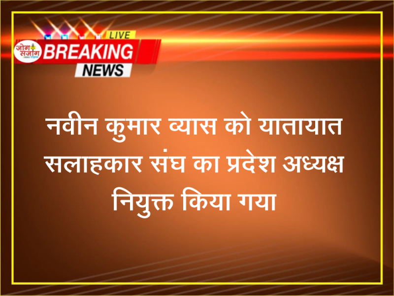 नवीन कुमार व्यास को भारतीय जनता मजदूर संघ राजस्थान प्रदेश से संबंध राजस्थान यातायात सलाहकार संघ का प्रदेश अध्यक्ष नियुक्त किया गया यह जानकारी भारतीय जनता मजदुर संघ के प्रदेश कार्यकारिणी अध्यक्ष गोरी शंकर व्यास ने मीडिया को दी गोरी शंकर व्यास ने बताया कि नवीन कुमार के व्यास इससे पहले यातायात मजदूर संघ बीकानेर के अध्यक्ष पद पर रह चुके हैं इनके कार्य को देखते हुए उनको उच्च पद पर मनोनीत किया गया आज दिनांक 12-7 2022 को कार्यालय मीटिंग रखी गई जिसमें प्रदेश कार्यकारिणी के अध्यक्ष श्रीमान गोरी शंकर व्यास यातायात सलाहकार के सदस्य अन्य पदाधिकारी उपस्थित रहे गोपी किशन गहलीत एडवोकेट गौरीशंकर सांखला एडवोकेट प्रताप सिंह एडवोकेट पुनिया ललित सिंह राठौड़ एडवोकेट धीरज सीडाना मुरलीधर सोलंकी एडवोकेट प्रेम विश्नोई रामदेव उमेश स्वामी विष्णु स्वामी बलवीर सिंह भाटी विजय सिंह भवानी सिंह अन्य सभी सदस्य उपस्थित रहे
